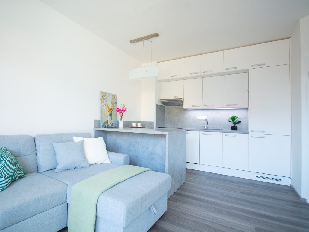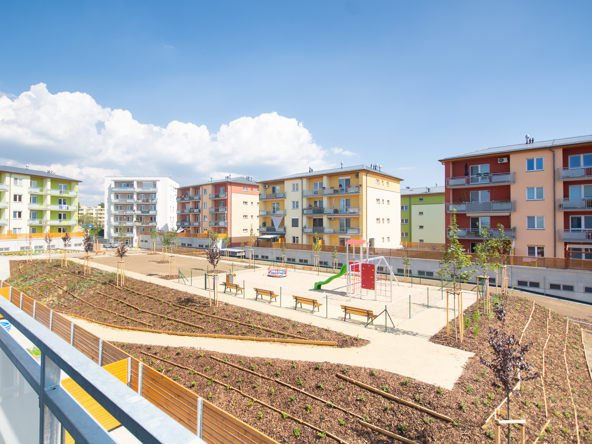 Dětské hřiště před domem, jen kousek supermarket, restaurace, cukrárna, kavárna, lékárna, zastávka MHD i nájezd na dálnici D1. V blízkém okolí najdete zkrátka všechno, co potřebujete.