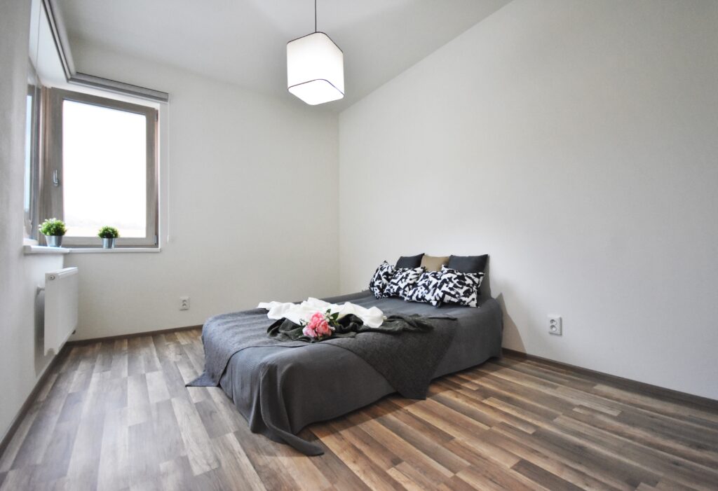 Byt je vybavený vestavěnými skříněmi v ložnici a v předsíni, kde oceníte i botník a zrcadlo. Koupelna s vanou je spojená s WC. V kuchyni stojí nová moderní linka s vestavěnými spotřebiči. Ostatní nábytek si můžete nastěhovat vlastní. V horkých letních dnech určitě využijete stínění proti slunci na všech oknech.
