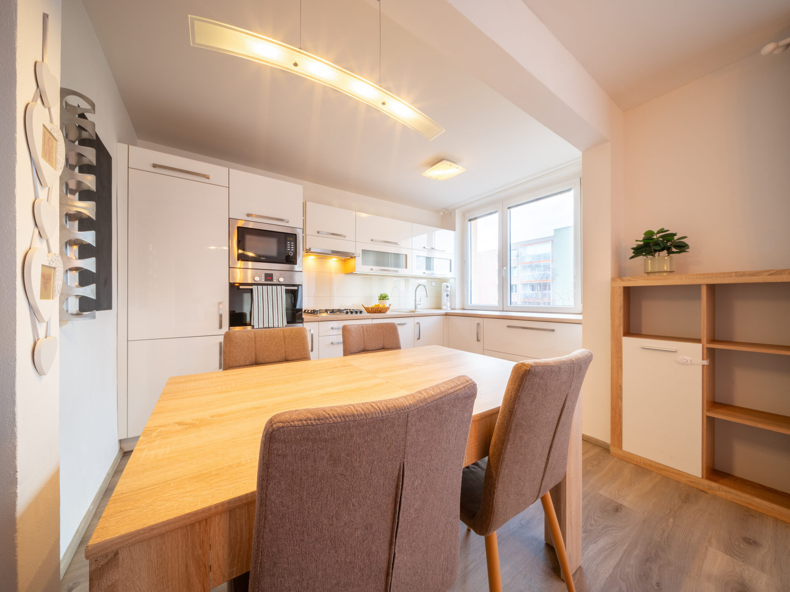 Byt prošel rekonstrukcí a pyšní se novým jádrem, plovoucími podlahami a novými vnitřními dveřmi. Zrekonstruovaná je také lodžie, kam se pohodlně vejde posezení, a vy si tak můžete vychutnat kávu s výhledem do zeleně.
