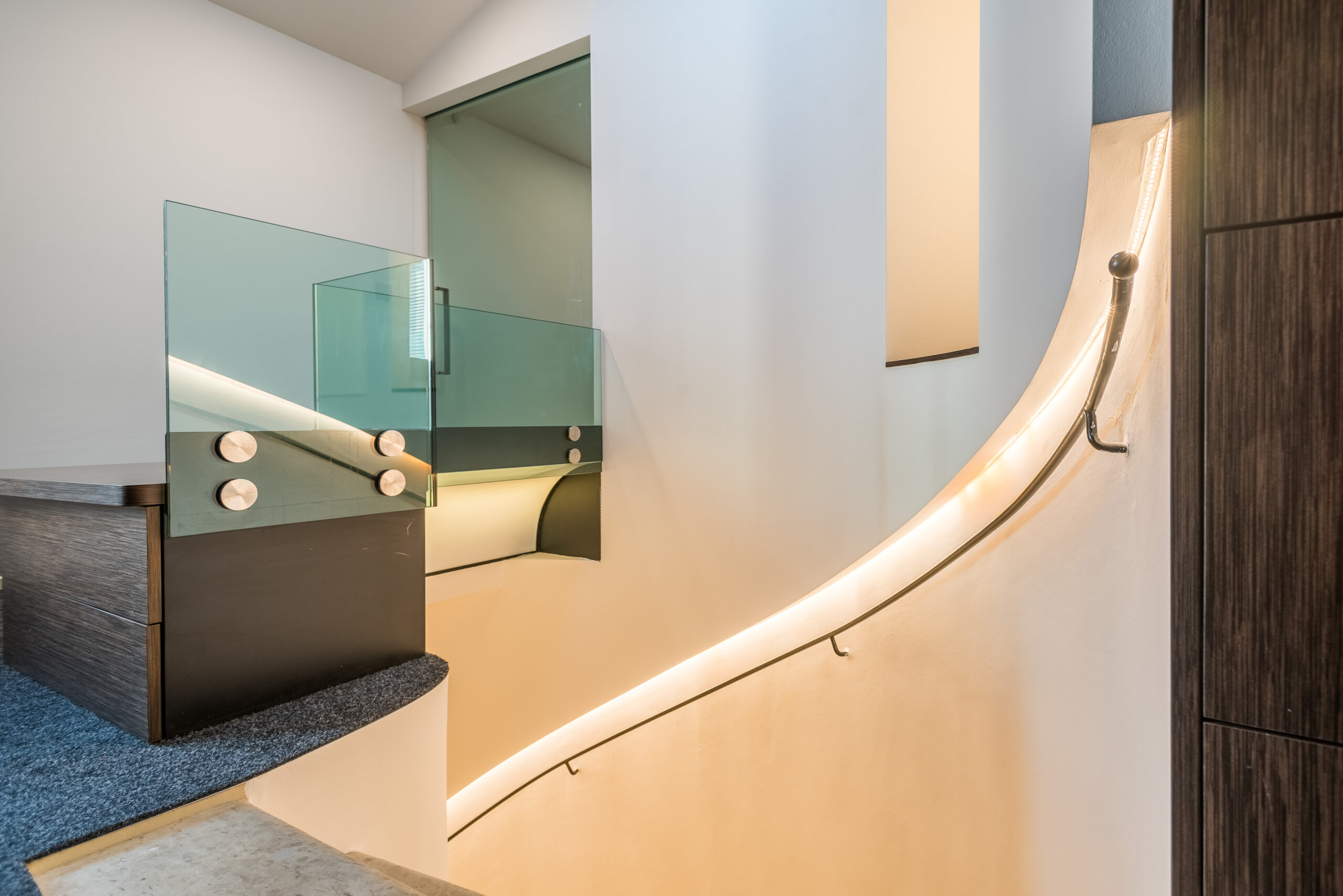 Dům i byt jsou po rekonstrukci, přičemž byt byl dokončen v roce 2015. Najdete tu dřevěnou podlahu, velkoformátovou dlažbu, původní pískovcové schodiště, původní interiérové cihlové zdi, luxusní kuchyň včetně spotřebičů (Miele, Samsung), hliníková okna i prosklení na terasu s automatickými zasouvacími dveřmi (Schüco), podlahové vytápění, klimatizaci, serverovnu a zabezpečovací systém.