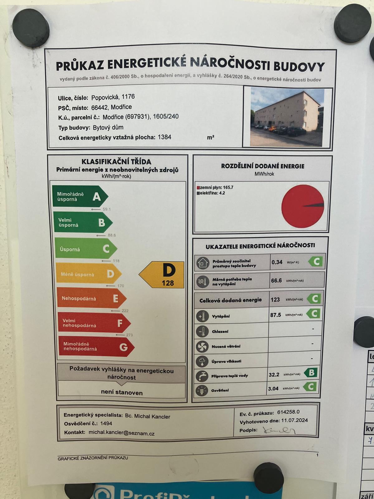 Byt se nachází ve 2. podlaží cihlového domu bez výtahu, na ulici Popovická v oblíbené lokalitě Modřice. Do centra Brna se odtud dostanete autem už za 15 minut. Brno je však výborně dostupné také MHD a vlakem. V okolí najdete přírodu, cyklostezky, koupaliště a OC Olympia.