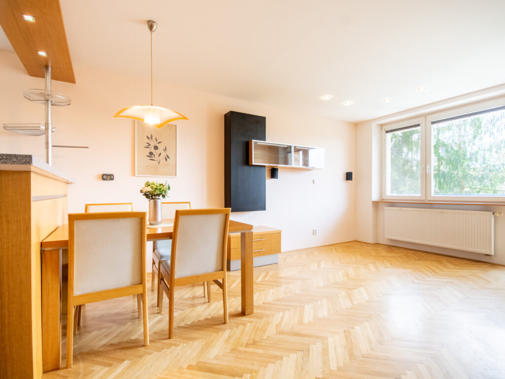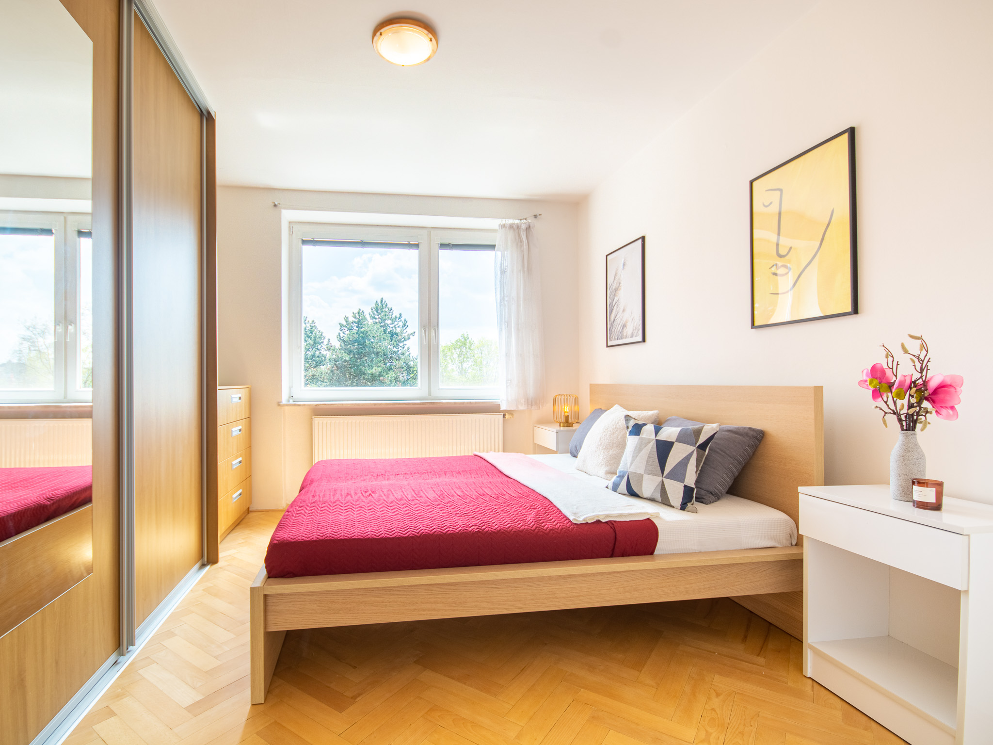 Tento byt zaujme ty z vás, kteří chtějí bydlet v krásném, nadstandardním domově. K dispozici vám bude prostorná kuchyň s jídelním koutem spojená s obývacím pokojem, ze kterého vstoupíte na lodžii. Ta láká k příjemnému posezení s výhledem do zeleně. V bytě najdete také dvě ložnice, z nichž jednu můžete využít jako pracovnu, dále koupelnu se sprchovým koutem a pračkou a samostatnou toaletu.