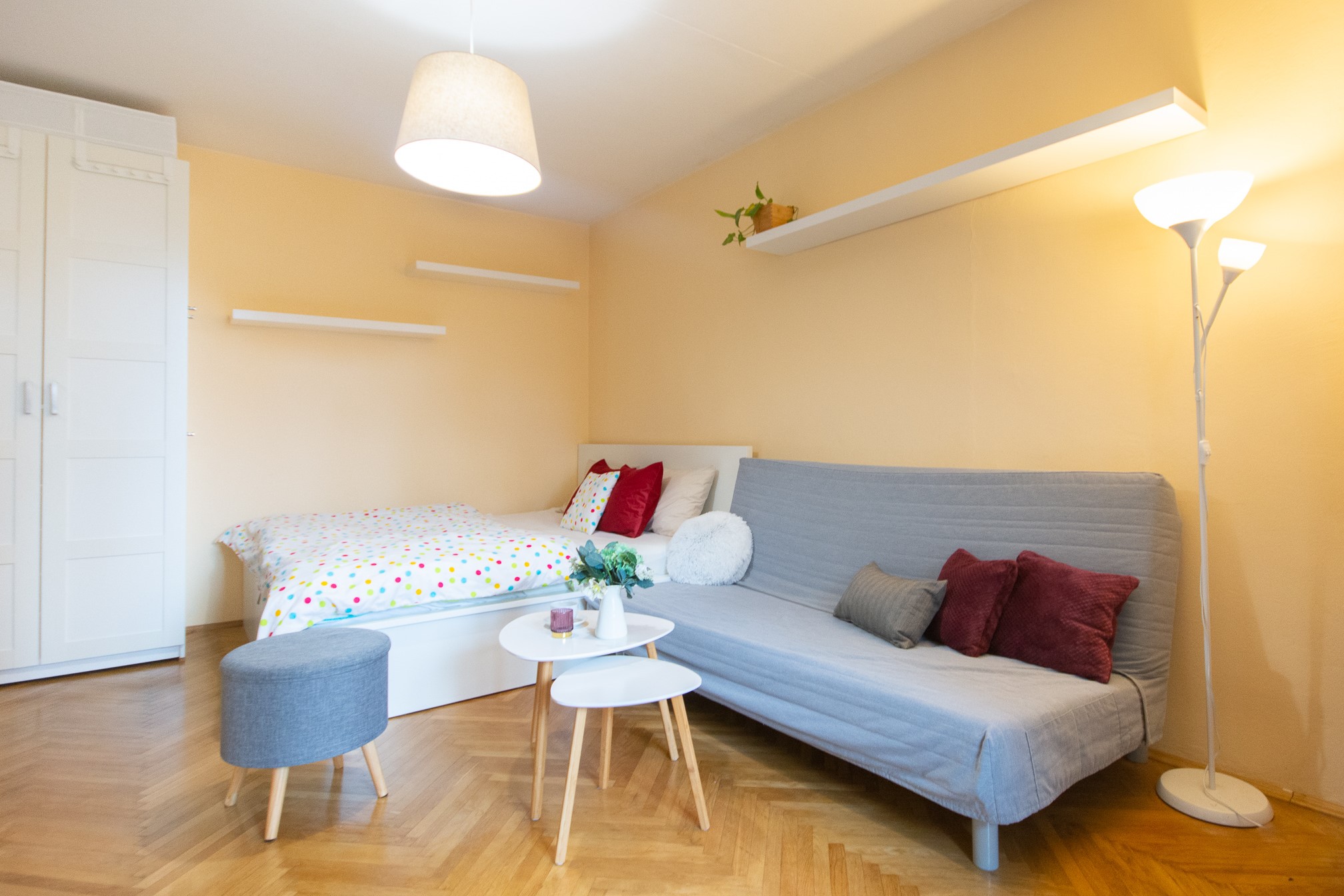 Částečně vybavený byt o velikosti 34 m2 na vás čeká na Halasově náměstí v městské části Brno-Lesná. Nachází se ve 2. patře panelového domu a má balkon. V bytě zůstává lednička, indukční varná deska, trouba, mikrovlnka, vestavěné skříně v předsíni a skříň v pokoji. Jinak si byt můžete vybavit podle svého vkusu. Příjemná lokalita Lesné vám také v nejbližším okolí nabízí vše, co potřebujete. Hned u domu stojí supermarket Albert, v dochůzí vzdálenosti najdete obchody Lidl, Penny či Kik. Nedaleko je poliklinika, koupaliště, vinárna a také zastávky MHD, odkud se po celém Brně dostanete řadou linek autobusů, tramvají i nočních rozjezdů. Pokud máte auto, snadno zaparkujete před domem. Majitel si přeje nájemníka bez zvířat a s pojištěním odpovědnosti za škody. Pokud vás bydlení zaujalo, bude volné od 15. ledna. Tak neváhejte a ozvěte se nám, rádi vás osobně provedeme.