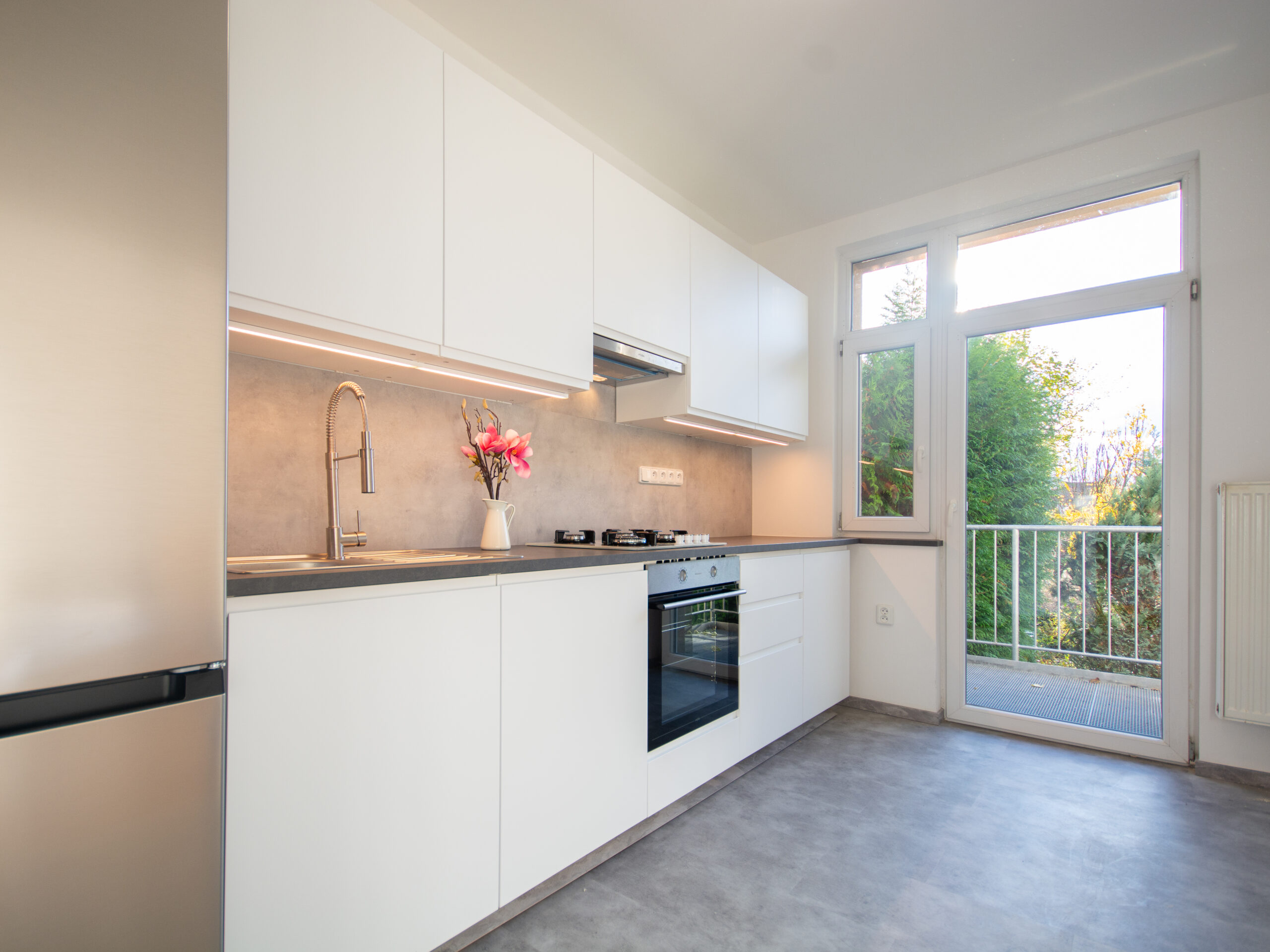 Hledáte útulný byt v Brně s výhledem do zahrady? Tento by pro vás mohl být ten pravý. Moderně zařízený byt s dispozicí 2+1 a velikostí 58 m² najdete v 1. patře cihlového domu na ulici Kamenačky, Brno – Židenice.