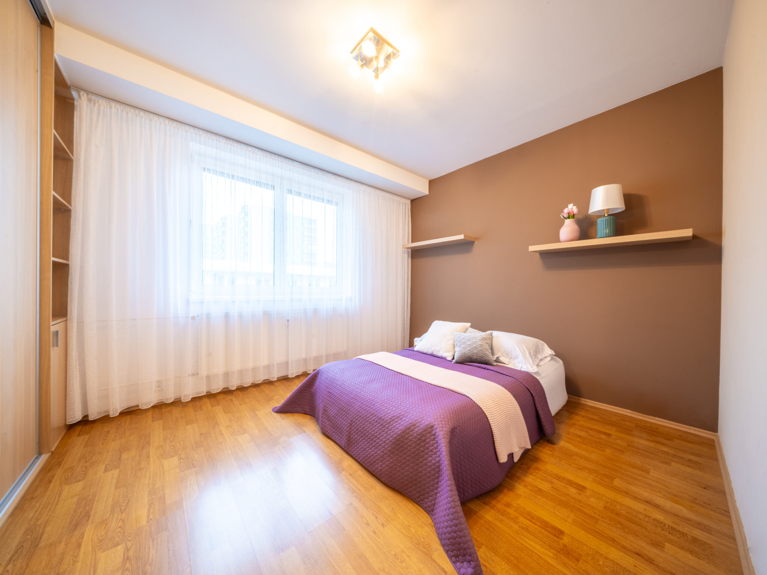 Představujeme vám byt o dispozici 3+kk, který je právě k pronájmu. Nachází se v cihlovém domě s výtahem, na Pálavském náměstí v městské části Brno–Vinohrady. Má velikost 94 m² a je ideální pro menší rodinu. K dvěma ložnicím, obývacímu pokoji a kuchyňskému koutu patří také prostorná lodžie (10 m²). Byt je téměř celý vybavený, stačí dokoupit jen postel a matrace a můžete bydlet. Jistě se vám budou hodit také praktické vestavěné skříně.