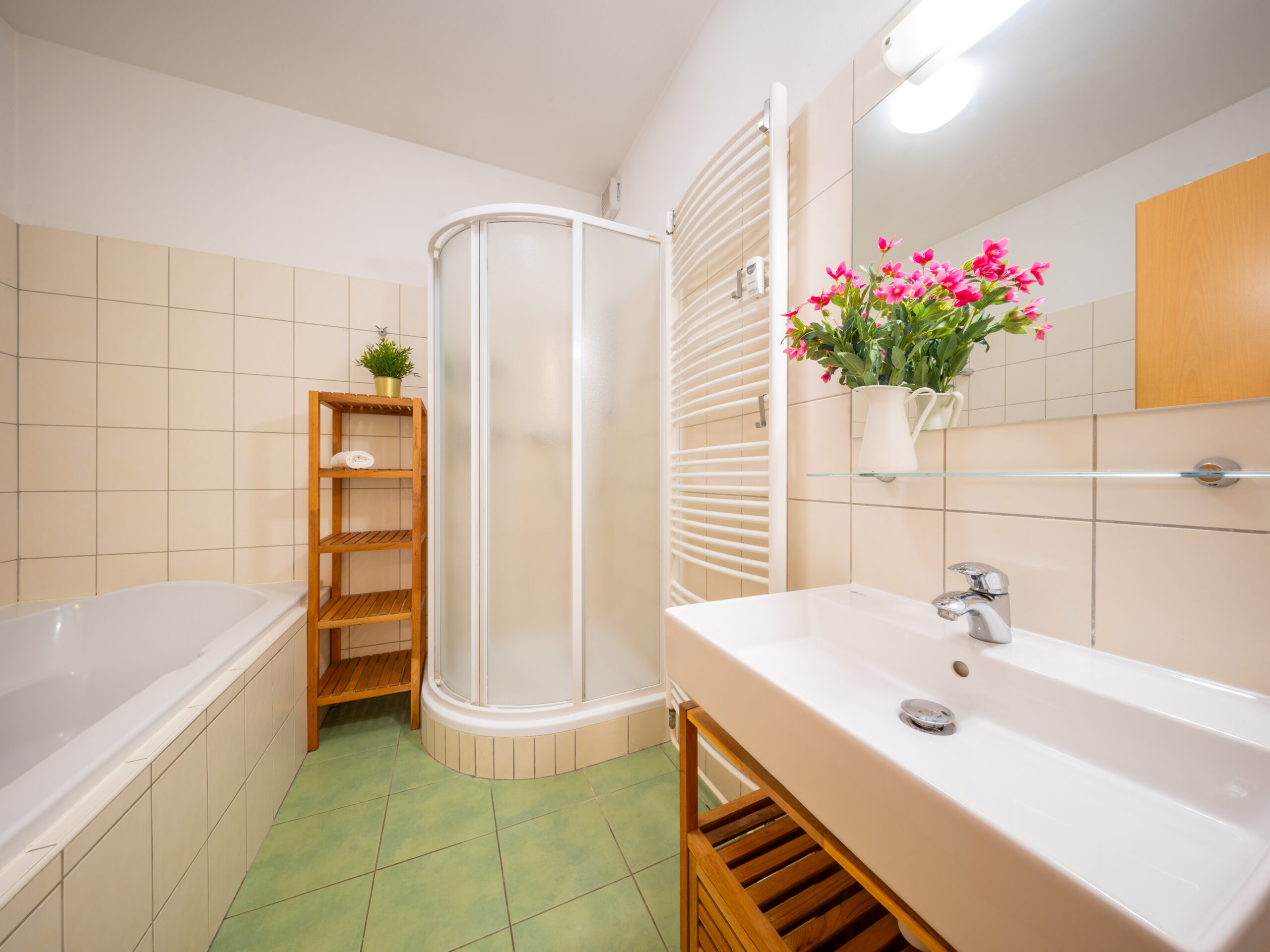 Krásně světlý a prostorný. Vkusně a moderně zařízený. V bezvadném stavu. S parkem přímo před domem.