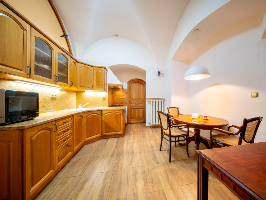 Dům prošel v roce 2011 rekonstrukcí – jsou tu nové rozvody elektřiny, vody a plynu, nové podlahy, stropy a další. Celková plocha dvou zrekonstruovaných pater je 592 m² a k tomu dále jednopatrová půda. K domu také náleží pozemek o velikosti 1 118 m², který nabízí dostatek prostoru na parkovací místa.